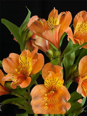 Alstroemeria 'Bali' is a densely branched, tuberous perennial with lance-shaped, dark green leaves and a profusion of golden-apricot flowers from early summer to fall. Long-lasting, the blossoms are adorned with red splashes and mahogany streaks.